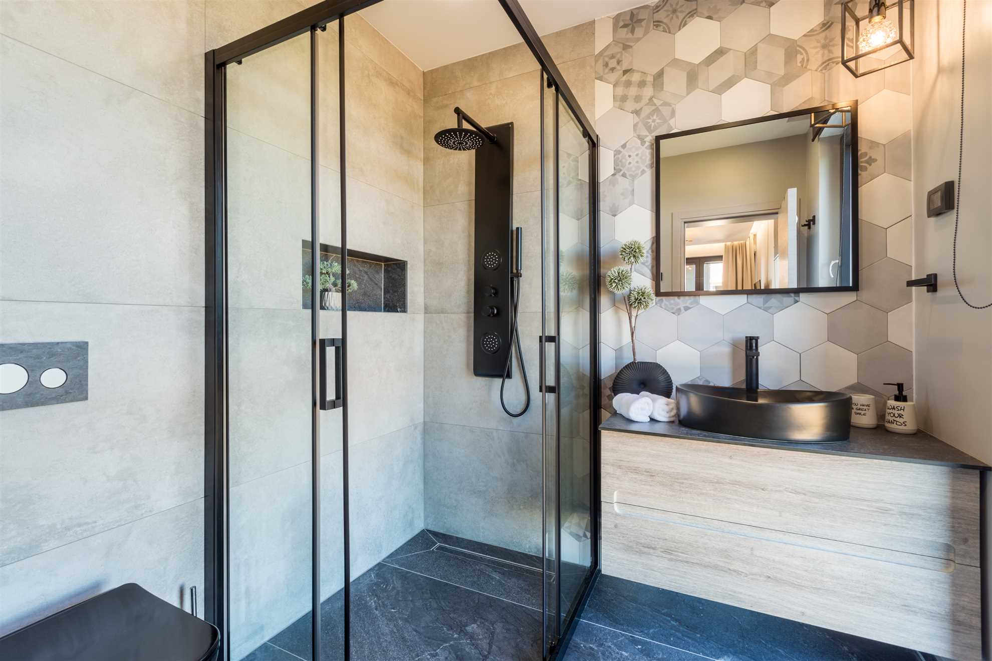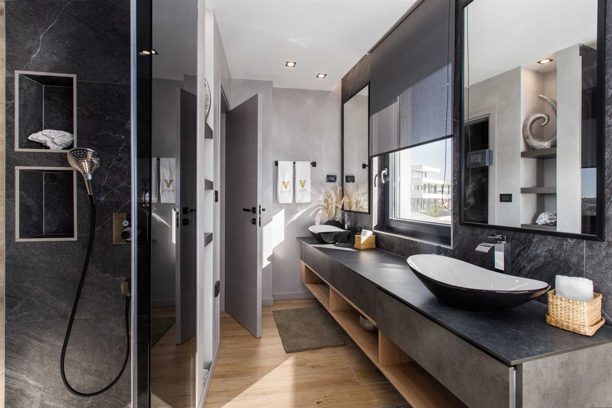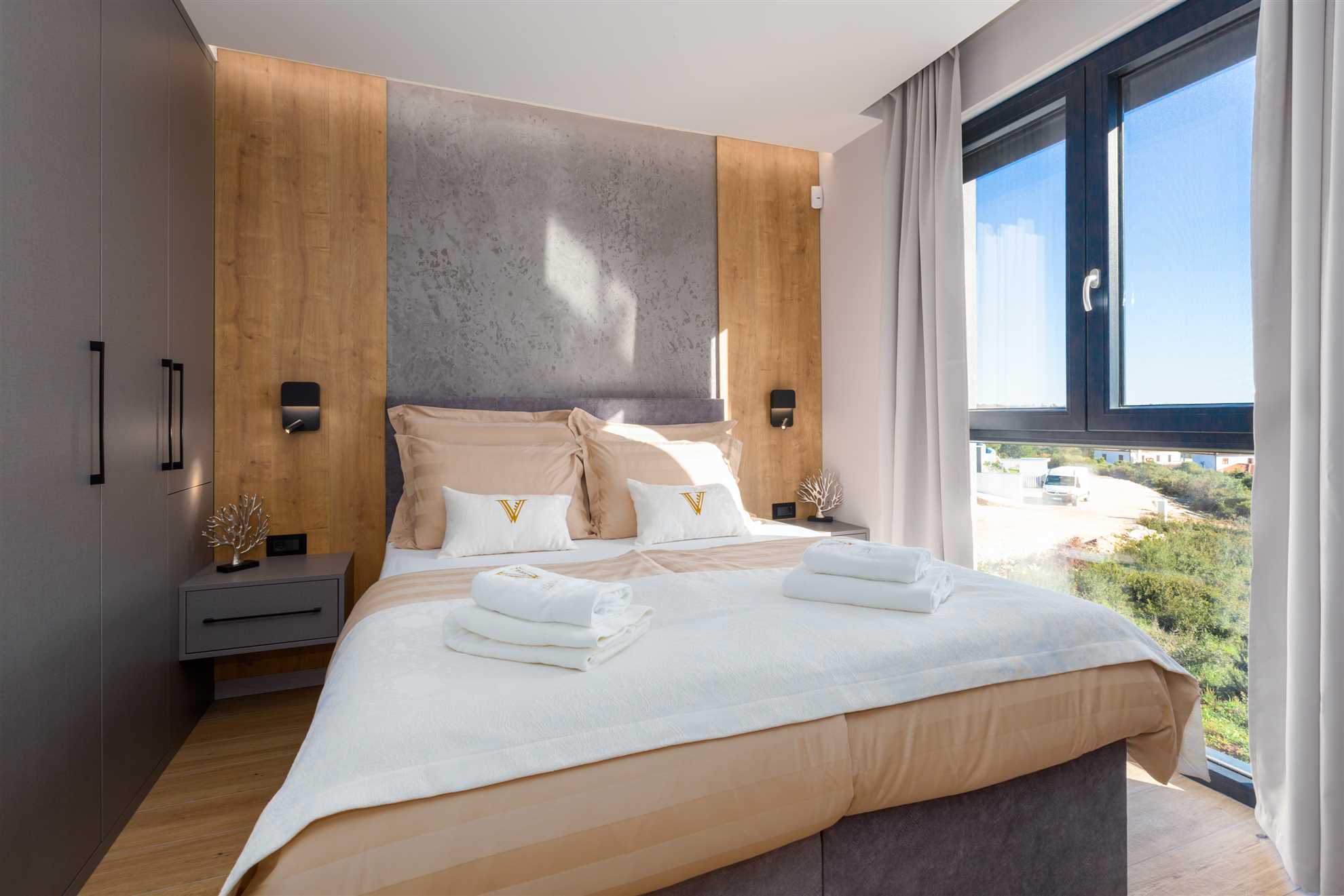 Elegant Accommodation Villa Vie offers 5 luxury bedrooms for up to 10 guests—one on the ground floor and four on the first. Some rooms feature private terraces with breathtaking sea views, perfect for a morning coffee. For ultimate indulgence, the master bedroom includes a bathtub by a panoramic window. Each room has a private bathroom, king-size bed, satellite TV, air conditioning, and premium amenities. A crib is available upon request.