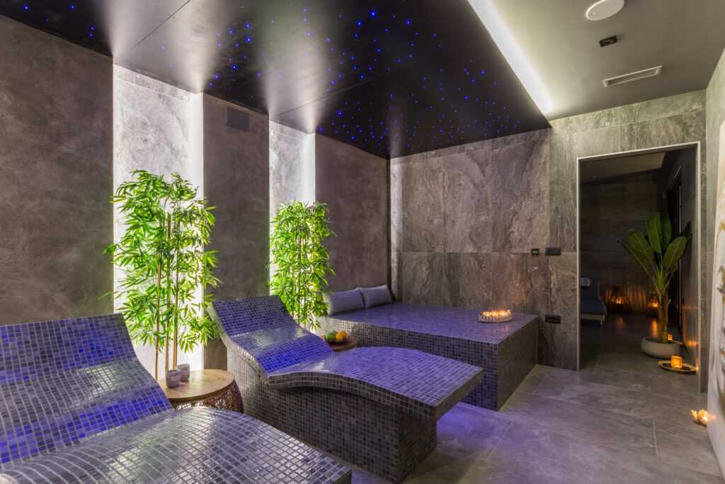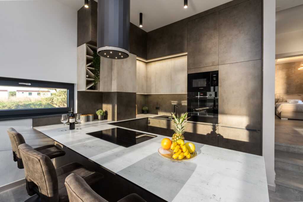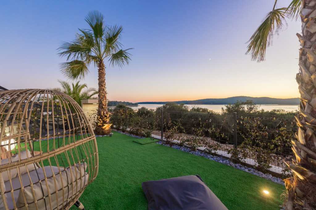 Entertainment & Activities Home theater with cinema armchairs and a popcorn machine. Rustic wine cellar with an open-air oven and darts for evening gatherings. Board games, jet skis, buggies, quads, kayak safari tours, and Brijuni National Park trips available at an additional cost. Wellness & Relaxation The underground wellness area includes a jacuzzi, Finnish sauna, and tepidarium benches. Massages are available upon request. Outside, the lush Mediterranean garden offers stunning views of the sea and islands.